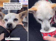A shelter volunteer filmed a senior dog’s special day out hoping that it would help him find a foster home for his remaining days, and internet users can’t