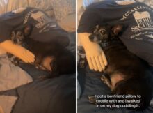 Although a mama dog hasn’t trusted humans enough to get close to them, she finally let her guard down when her puppy needed help. Izzy, known on TikTok