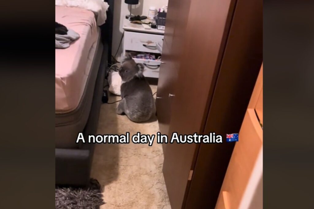 A couple’s shock upon discovering a koala sitting in their bedroom in Australia has taken TikTok by storm.