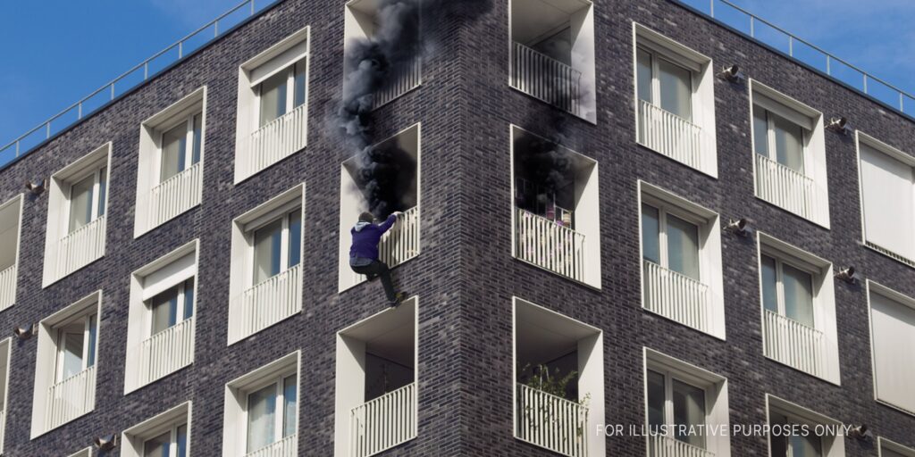 “Are you insane? She’s eight floors up, and that fire escape isn’t stable,” the onlooker shouted.