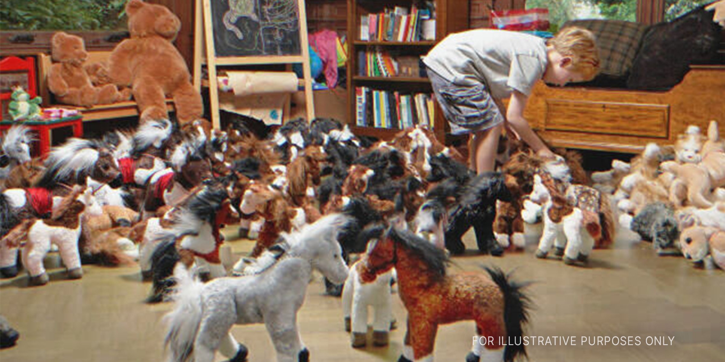 Little Boy Surrounded With Soft Toys. | Source: Getty Images Cory’s little heart went out to his unprivileged shelter friends who hadn’t found a loving home like him,